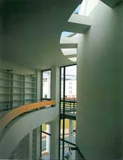 ""Die Gebäude strahlen Ruhe aus", stellte die Jury fest. "Sie sind einfach und übersichtlich zoniert, gut proportioniert und bestechen durch saubere, angemessene Details." Insgesamt überzeugte dieses Projekt die Jury des Architekturpreises Beton durch den stimmigen rationalen Einsatz einfacher, strenger Formen, bei denen keine Starrheit entsteht, "denn gleichzeitig wirkt das Ganze durch die kluge Überlagerung verschiedener Ebenen, Raster und Nutzungen sehr lebendig". Auch die intelligente, rhythmische Gliederung der Baumassen unterstützt den Eindruck von "Disziplin und Freiheit". Im übrigen beweise die Anlage, daß "auch bei der Vergabe einer Bauaufgabe an einen Generalunternehmer architektonisch hochwertige und ausgezeichnete, bestechende Detailarbeit erreicht werden kann"." ... aus Beton Prisma 57/1989