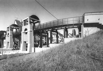 "Diese ursprünglich nur technische Funktion wurde über ihre Notwendigkeit hinaus mit Witz und Phantasie zu einem neuen städtebaulichen Akzent umgestaltet. Erfreulich ist die Frische und Unverkrampftheit, mit der dieses Problem angefaßt wurde. Tragwerk und Tortürme sind deutlich sichtbar aus Stahlbeton, die Zwischenteile aus Stahl. Das Ganze ist eine gelungene Kombination beider Materialien, die zweckentsprechend eingesetzt wurden. Insgesamt ist diese Arbeit als Beispiel zu begrüßen, bei dem alle Beteiligten eine ursprünglich nur technische und an Sicherheitsfragen orientierte Aufgabe zu einem attraktiven, stadtgestalterischen Merkzeichen ausformten." ... aus dem Jurybericht Architekturpreis Beton 1989