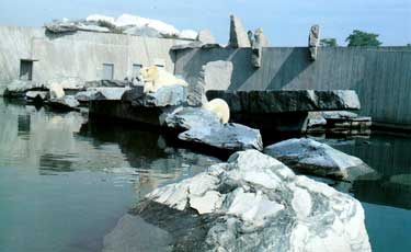 "Bei der Anlage im zoologischen-botanischen Garten in Stuttgart würdigte die Jury des Architekturpreises Beton vor allem "die unterschiedlichen Strukturen des Betons, die hier zu einer faszinierenden Kunstlandschaft gemacht wurden, daß Gebautes und Natur, Beton und Naturstein eine Symbiose eingehen aber ihre Charakteristika behalten und daß die Komposition bildhauerische Qalitäten hat, künstlerisch gedacht ist": Die Frage aber bleibt offen, was die Tiere wohl über ihre Behausung denken. Allem Anschein nach fühlen sie sich in ihrer Umgebung wohl." ... aus Beton Prisma 65/1993