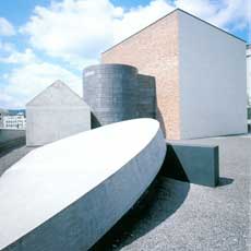 "Die schräg gestellte Fassade aus der Gründerzeit wird zm Verbindungsglied von heute in die Vergangenheit. Die Vergangenheit wird dann aber nicht verklärt, nachgebaut, sondern angerissen, zitiert, verfremdet. Tauchen dann die übrigen Fetische des Marktes im Blickfeld auf, die Baukräne, die bunten Reklametafeln, die Werbebotschaften, so wird der neue Ort der Erinnerung in die neue Zeit nachbarschaftlich integriert, ohne seine Bedeutung zu verlieren. die symbolisch verwendeten geometrischen Gebäudeelemente sind in ihrer Formensprache und den verwendeten Baumaterialien deutlich genug, um das Besondere der Anlage zu unterstreichen. Das Denkmal wird trotz der Bescheidenheit in den Dimensionen nicht von seiner heterogenen Umgebung abgesondert, aufgefressen. Es verschwindet nicht aus dem Blickfeld des Alltäglichen. So wird dieser Ort der Erinnerung zum Mahnmal."... aus Beton Prisma 69/1995