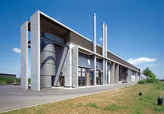 "Durch Addition der Funktionen, Aufreihung der Volumen und Akzentuierung der verschiedenen Bereiche wird ein strenger, aber doch abwechslungsreicher Baukörper in die Landschaft gestellt.....Sichtbeton, Stahl, Glas und Aluminium prägen die rationale Fassade....Obwohl es sich um einen nüchternen und robusten Zweckbau handelt, wirkt er optisch sympathisch. Das liegt vor allem am durchgängigen Einsatz von Sichtbeton bei allen Oberflächen, ob sie nun aus Ortbeton oder aus Betonfertigteilen hergestellt sind, so die Jury des Architekturpreises." ... aus Beton Prisma 78/2000