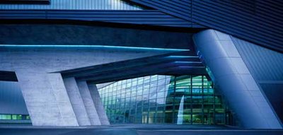 Das „Zentralgebäude“ als neuer Industriebautypus verbindet wie ein Schlangenleib die nüchternen, containerförmigen Werkshallen miteinander. In Scharen hinwegeilende Deckenspuren, Rampen mit entlangschießenden Geländern, die Transportbrücken an der Decke mit der Prozession der Metallkarossen, alles scheint in Bewegung. Verkehrswege, Abläufe und Raumfolgen sind in weitem Maß plausibel und effektiv und haben die Architektur offenbar mehr bestimmt als umgekehrt. Rautenförmige Raumzuschnitte, springende Fenster und bizarre Treppen gehören zur Grammatik der in selbstverdichtenden Beton gegossenen Architektursprache. Die Nutzungen, vor allem die verschiedenen, über Treppen und Rampen erschlossenen Büroebenen, sind offen in einem Raumkontinuum organisiert, das vor allem eines leisten soll: die Mitarbeiter miteinander in Kontakt bringen, sie auf das gemeinsame Werk einschwören. ... die Jury der Architekturpreises Beton 2005