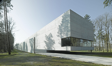 Spektakuläre architektonische Demonstrationen waren bei der Bauaufgabe Gedenkstätte für ein Konzentrationslager nicht gefragt. Statt dessen ein unaufdringliches, würdevolles Ambiente, das Hinwendung und Anteilnahme zum Ausdruck bringen kann. Grundgedanke des Entwurfs ist die bauliche Fassung eines „steinernen Weges“ entlang des gestreckten Gebäudes in das Lagergelände. Der lineare Weg über lange Rampen durch die nacheinander angeordneten und sich teilweise überlagernden Räume ist auch das bestimmende Motiv im Inneren. Die räumlich und körperlich präzise definierte und bewusst effektarm gestaltete Architektur ist durch äußersten Minimalismus in der Materialwahl bestimmt. Die Räume sind durch massive Wände und sorgsam geführtes Tageslicht definiert und unterstützen mit ihrer konzentrierten Atmosphäre die Funktion des Dokumentationszentrums als stillen Ort der Vorbereitung auf den Rundgang durch das Lagergelände." Begründung der Jury des Architekturpreises Beton 2008